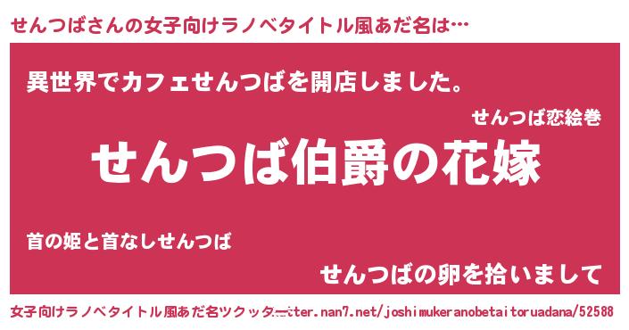| 男性向けラノベタイトル風あだ名 | 『やはりせんつばの青春ラブコメはまちがっている 』 |