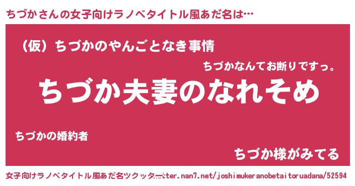 | 男性向けラノベタイトル風あだ名 | 『おまえをオタクにしてやるから、俺をちづかにしてくれ! 』 |