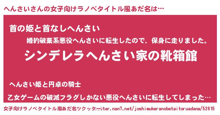 | 意味不明あだ名 | 『住所不定無職へんさい(43歳)』 |
