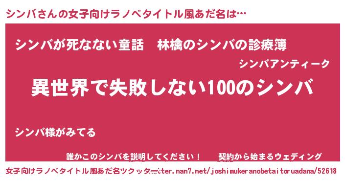 | 男性向けラノベタイトル風あだ名 | 『シンバという概念が存在しない退屈な世界 』 |