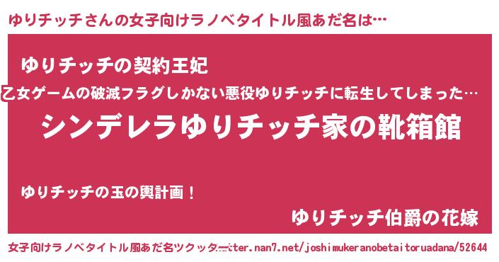 | 胡散臭い通販商品みたいなあだ名 | 『絶対に幸福をもたらす健康食品…その名も「ゆりチッチ」』 |