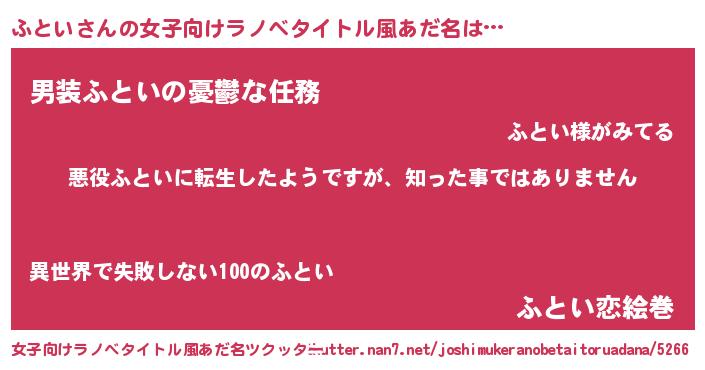 | 意味不明あだ名 | 『住所不定無職ふとい(10歳)』『自称ふとい』 |