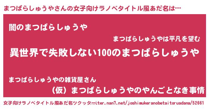 | 男性向けラノベタイトル風あだ名 | 『まつばらしゅうやという概念が存在しない退屈な世界 』 |