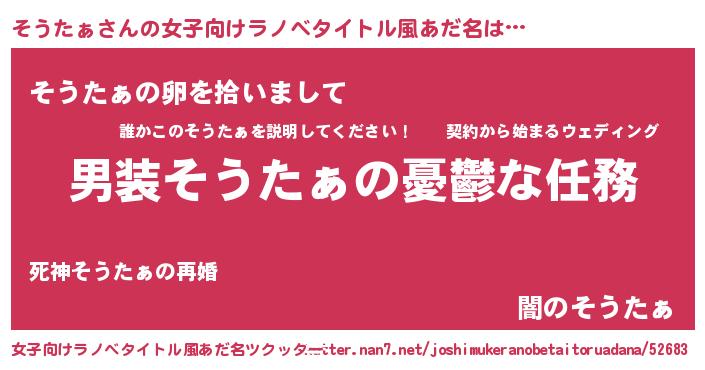 | 男性向けラノベタイトル風あだ名 | 『冴えないそうたぁの育てかた』 |