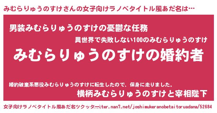 | 胡散臭い通販商品みたいなあだ名 | 『運命の人と巡り会える高級そうな壺…その名も「みむらりゅうのすけ」』 |