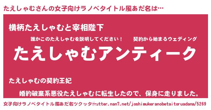| 男性向けラノベタイトル風あだ名 | 『魔法科高校のたえしゃむ』 |