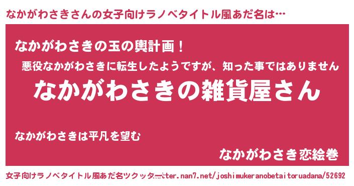 | 男性向けラノベタイトル風あだ名 | 『やはりなかがわさきの青春ラブコメはまちがっている 』 |