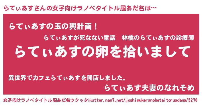 | 男性向けラノベタイトル風あだ名 | 『らてぃあすの嫁は女の子じゃないと思った?』 |