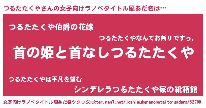 | 男性向けラノベタイトル風あだ名 | 『はたらくつるたたくやさま!』 |
