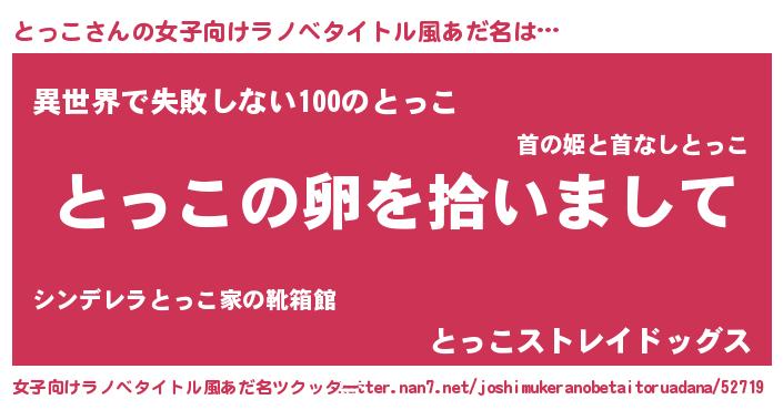 | 意味不明あだ名 | 『とにかく怪しいとっこ』『自称とっこ』 |
