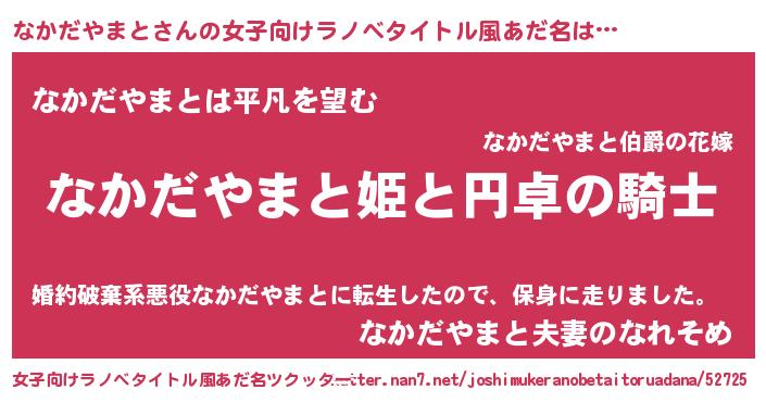 | ヒーロー風カッコイイあだ名 | 『スーパーナカダヤマト』『暗黒騎士ナカ』 |