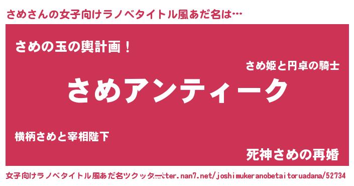 | 意味不明あだ名 | 『自称さめ』『なめこ科さめ属』 |