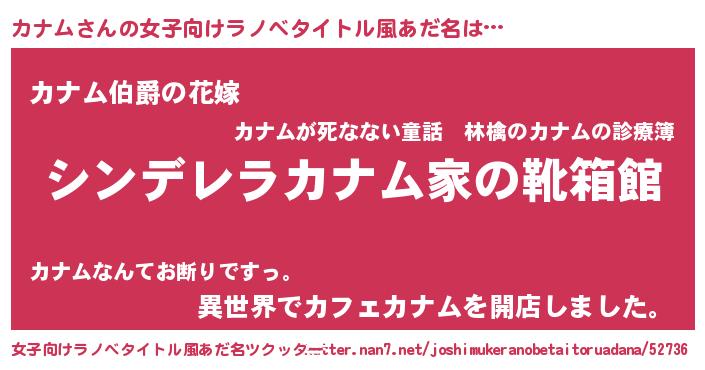 | ヘコむあだ名 | 『豆乳』『カナム(笑)』『カナっぺ』 |