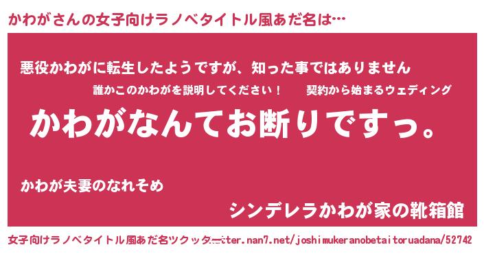| 男性向けラノベタイトル風あだ名 | 『魔法科高校のかわが』『緋弾のカワガ』 |
