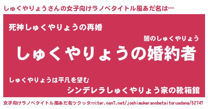 | 意味不明あだ名 | 『しゅくやりょうフォーエバー』 |