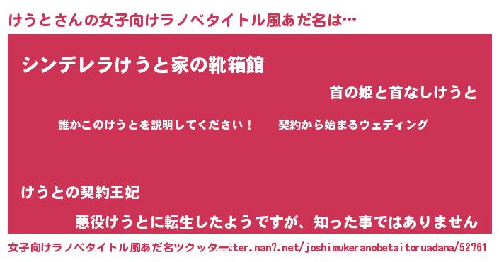 | 男性向けラノベタイトル風あだ名 | 『ケウトアートオンライン』 |