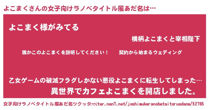 | 男性向けラノベタイトル風あだ名 | 『ヨコマクアートオンライン』 |