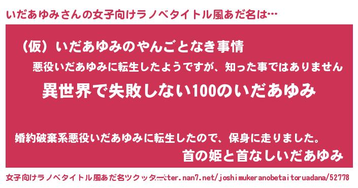 | 意味不明あだ名 | 『永久保存いだあゆみ』 |