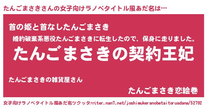 | 胡散臭い通販商品みたいなあだ名 | 『来世でも幸せになれる健康食品…その名も「たんごまさき」』 |