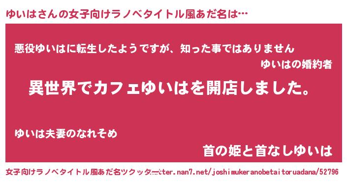 | 意味不明あだ名 | 『永久保存ゆいは』『ゆいはフォーエバー』 |