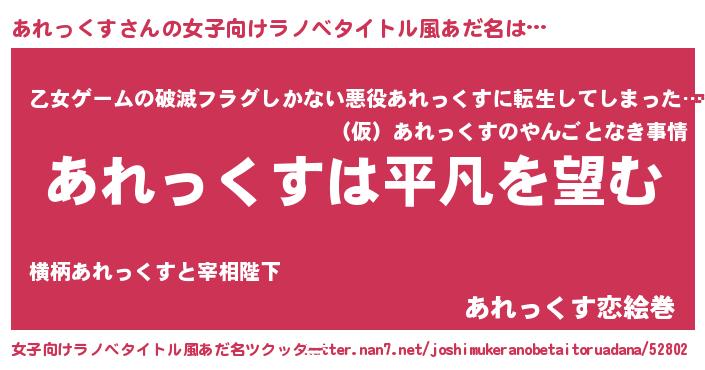 | 男性向けラノベタイトル風あだ名 | 『ダンジョンにあれっくすを求めるのは間違っているだろうか』 |