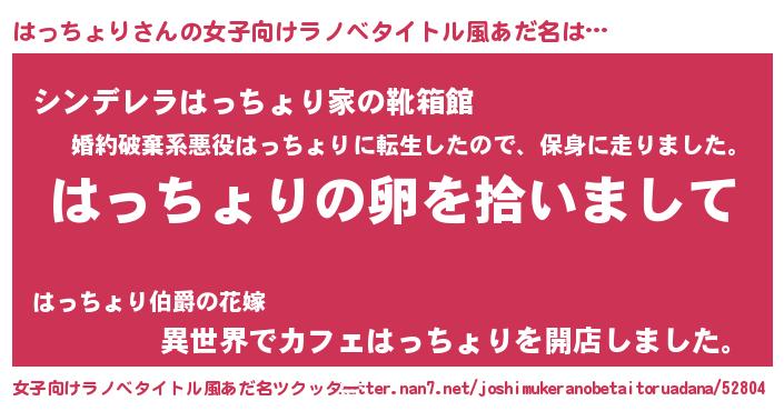 | 男性向けラノベタイトル風あだ名 | 『ダンジョンにはっちょりを求めるのは間違っているだろうか』 |