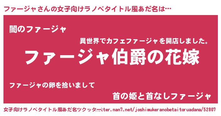 | 男性向けラノベタイトル風あだ名 | 『やはりファージャの青春ラブコメはまちがっている 』 |