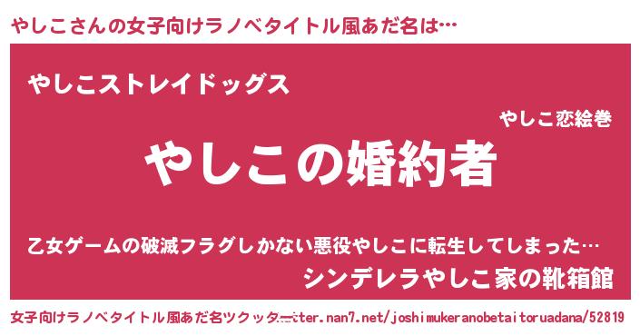 | 胡散臭い通販商品みたいなあだ名 | 『運命の人と巡り会える高級そうな皿…その名も「やしこ」』 |