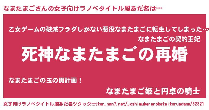 | 男性向けラノベタイトル風あだ名 | 『ノーゲーム・ノーナマタマゴ』 |