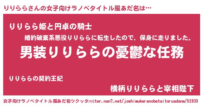 | 胡散臭い通販商品みたいなあだ名 | 『億万長者になれる水晶球…その名も「りりらら」』 |