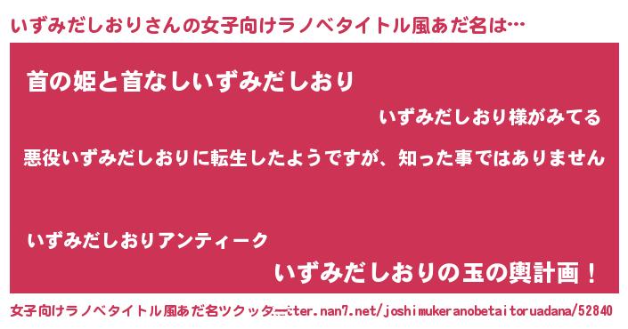 | 意味不明あだ名 | 『住所不定無職いずみだしおり(40歳)』 |