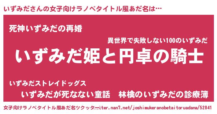 | 男性向けラノベタイトル風あだ名 | 『イズミダアートオンライン』 |