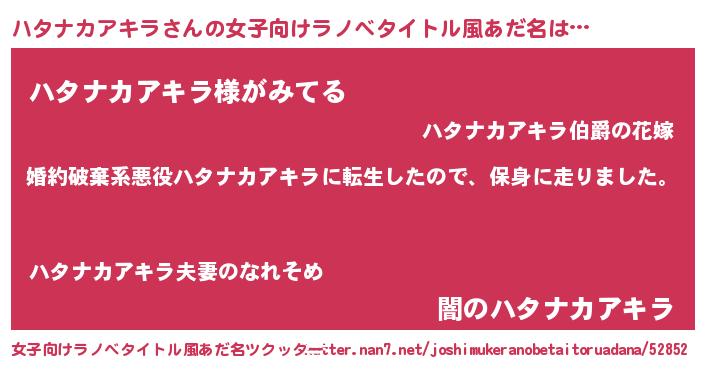 | 胡散臭い通販商品みたいなあだ名 | 『信頼と実績のペンダント…その名も「ハタナカアキラ」』 |