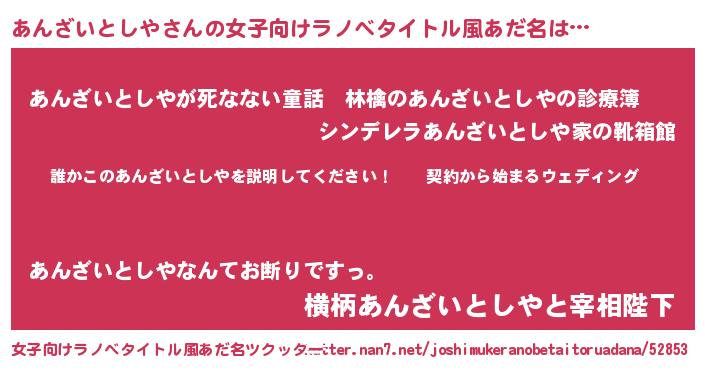 | 男性向けラノベタイトル風あだ名 | 『アンザイトシヤアートオンライン』 |