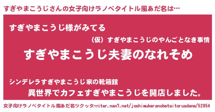 | 男性向けラノベタイトル風あだ名 | 『おまえをオタクにしてやるから、俺をすぎやまこうじにしてくれ! 』 |
