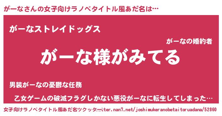 | 胡散臭い通販商品みたいなあだ名 | 『全米が絶賛したサプリメント…その名も「がーな」』 |