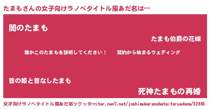 | 男性向けラノベタイトル風あだ名 | 『タマモアートオンライン』 |