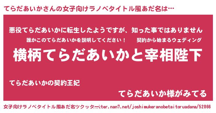 | 男性向けラノベタイトル風あだ名 | 『てらだあいかに滅ぼされるだけの簡単なお仕事です』 |