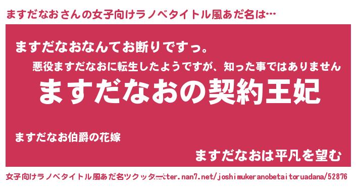 | 胡散臭い通販商品みたいなあだ名 | 『来世でも幸せになれる水素水…その名も「ますだなお」』 |