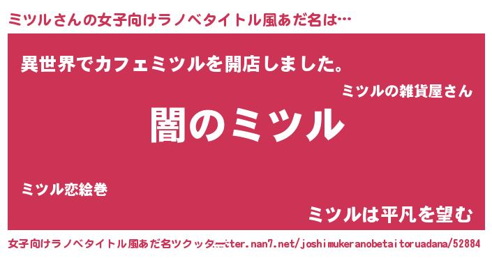 | ファンタジー風あだ名 | 『ゼミツトゥ』『ミツディッシュ』 |