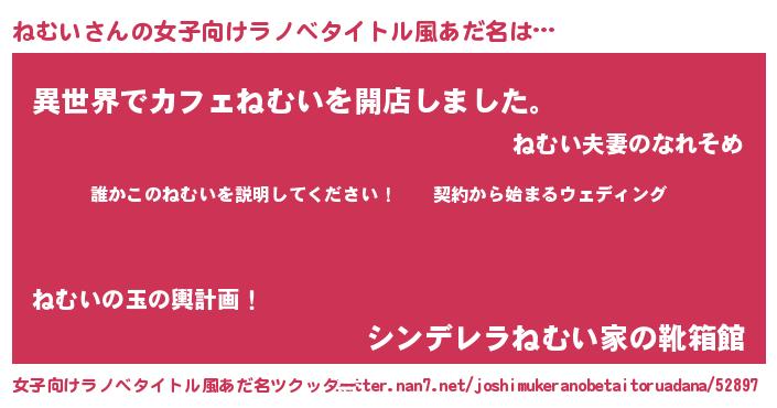 | 男性向けラノベタイトル風あだ名 | 『ネムイアートオンライン』 |