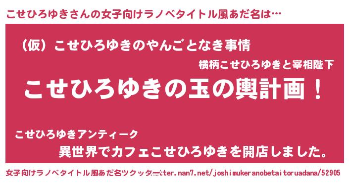 | ヘコむあだ名 | 『こせもー』『こせひろゆき(笑)』 |