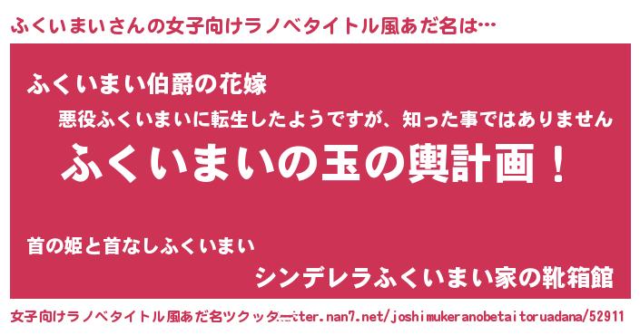 | 胡散臭い通販商品みたいなあだ名 | 『運命の人と巡り会える高級そうな絵画…その名も「ふくいまい」』 |
