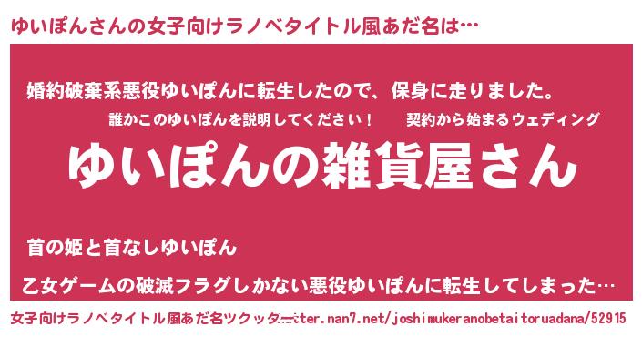 | 胡散臭い通販商品みたいなあだ名 | 『幸せが訪れる高級そうな壺…その名も「ゆいぽん」』 |