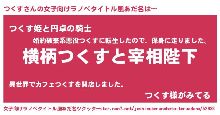 | 男性向けラノベタイトル風あだ名 | 『つくすに滅ぼされるだけの簡単なお仕事です』 |