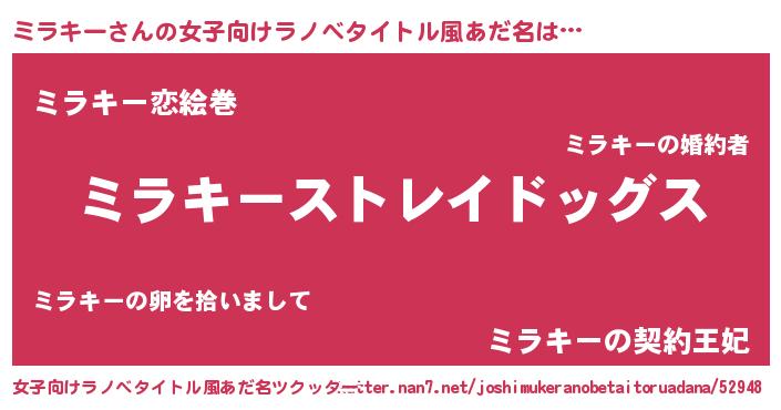 | 男性向けラノベタイトル風あだ名 | 『Re:ミラキーから始める異世界生活』 |