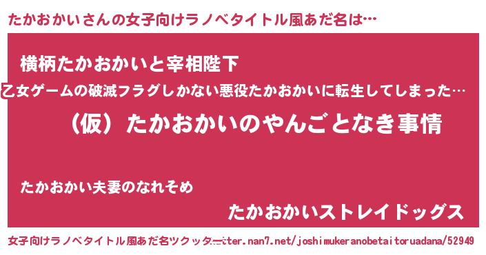 | 男性向けラノベタイトル風あだ名 | 『たかおかいの憂鬱』 |