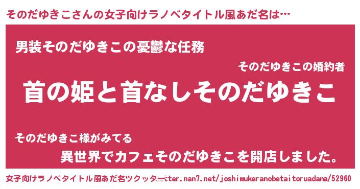 | 男性向けラノベタイトル風あだ名 | 『はたらくそのだゆきこさま!』 |