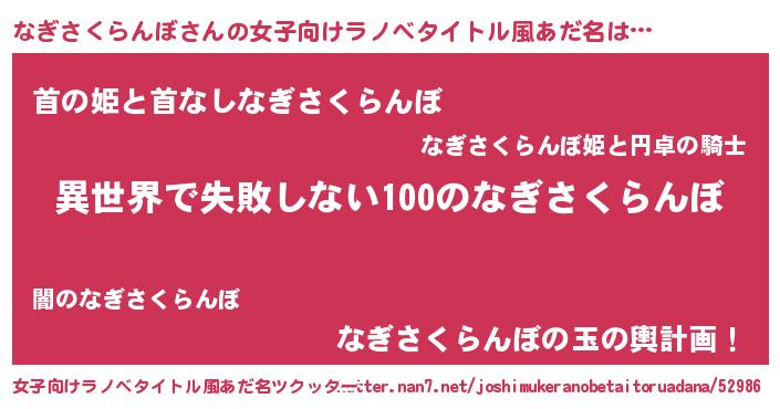 | 男性向けラノベタイトル風あだ名 | 『なぎさくらんぼという概念が存在しない退屈な世界 』 |