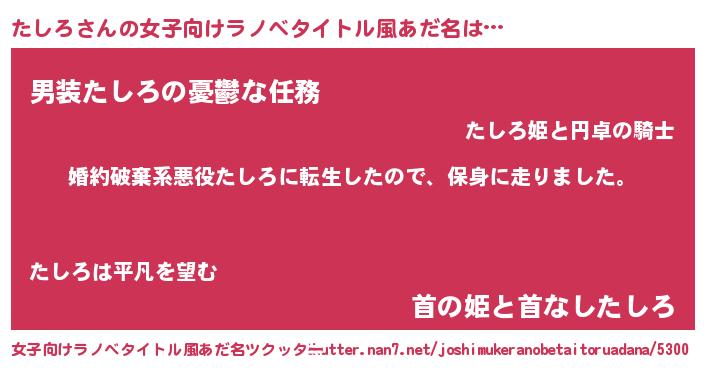 | 男性向けラノベタイトル風あだ名 | 『転生したらたしろだった件』 |